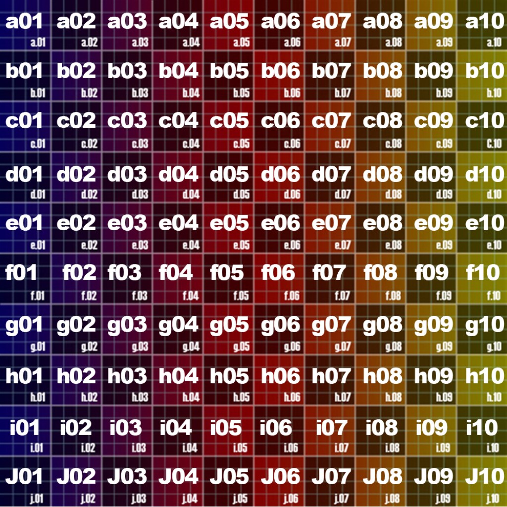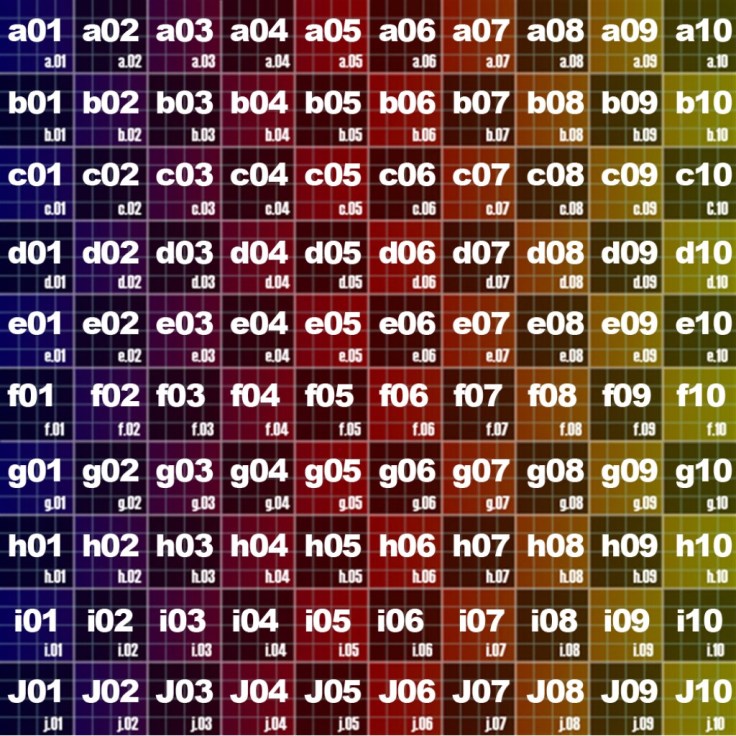 I think I’ll do that in two steps. Not that we couldn’t do all of this in one go, but you know I like to go in tiny steps so I can be sure each bit is correct. First, I’ll create a function that, given an integer 0-99, displays the appropriate cell. That is, for 0, it will display the a01 cell, for 10, the b01, and for 99, the j10. Here’s that: