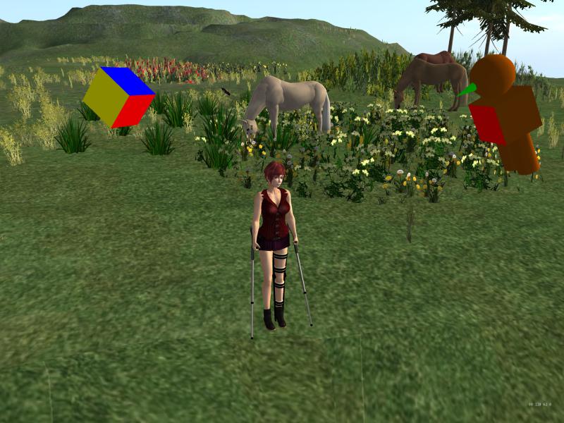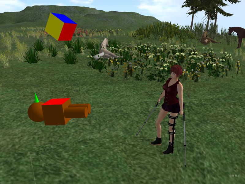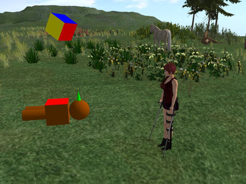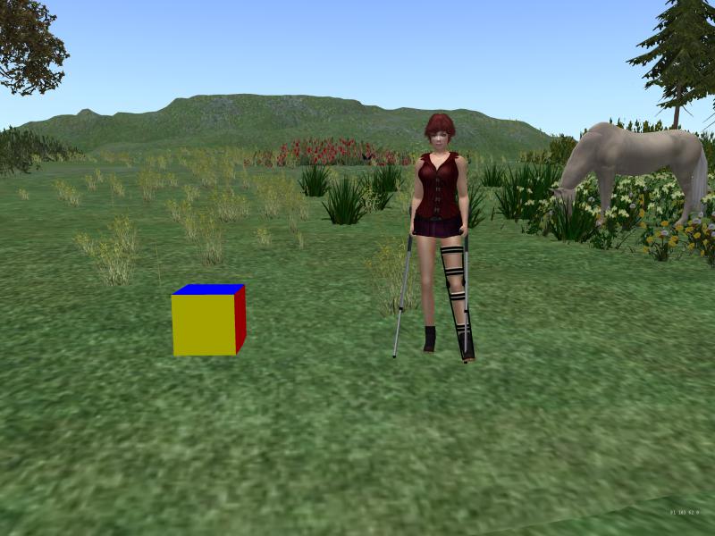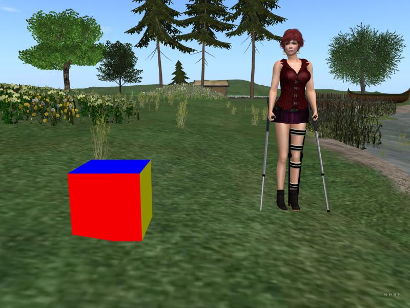 The vector sameHeight refers to the owner’s X and Y, but uses Z = zero, as does our starting vector <1,0,0>. So the cube stays flat as you can see in the picture below: