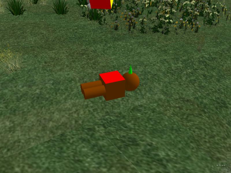 Instead of facing me properly, R Jacob points his feet at me. How rude! I’m glad I didn’t really give him any feet, just stubby little legs. So we need to make him rotate correctly to face me. To do that we first position him at zero rotation, which means I’ll have to stop his script.