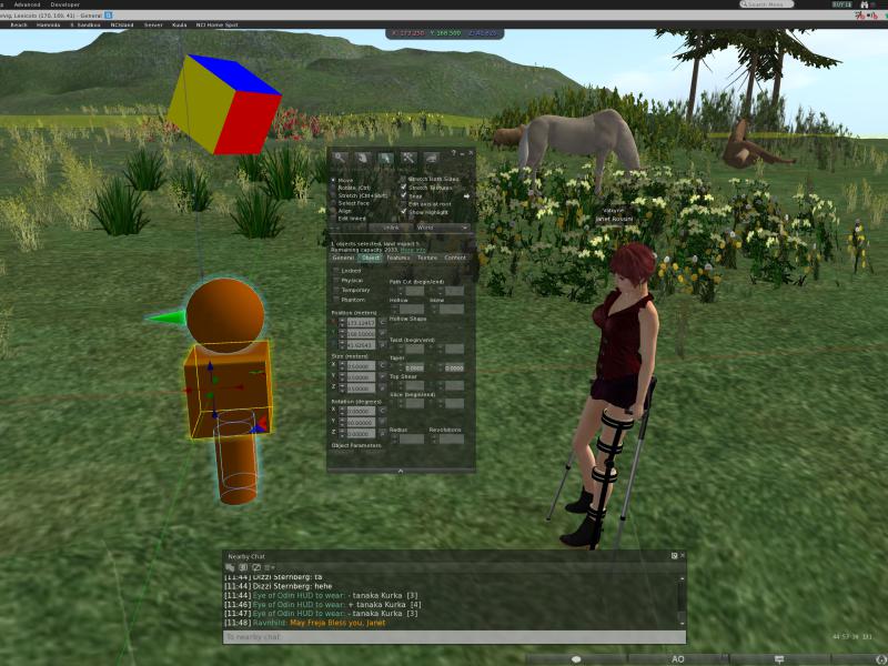 Now let’s work on getting the cube to point at me. Once that works, as I walk around it, it should turn its red face to be toward me. I’m going to do this in two steps, because of an oddity in how the llRotBetween function works.